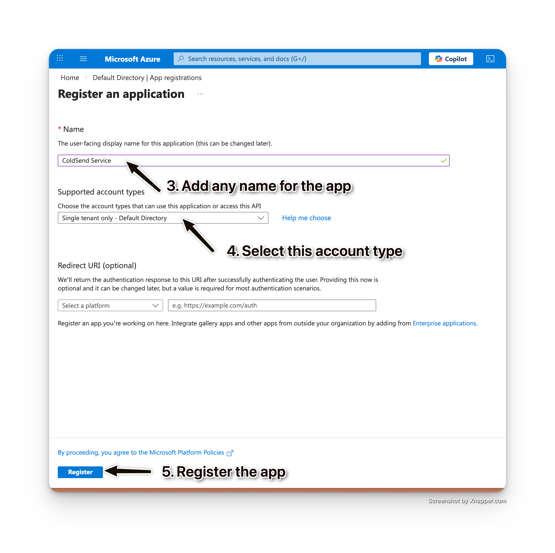 - Enter a Name (e.g., "ColdSend Service")