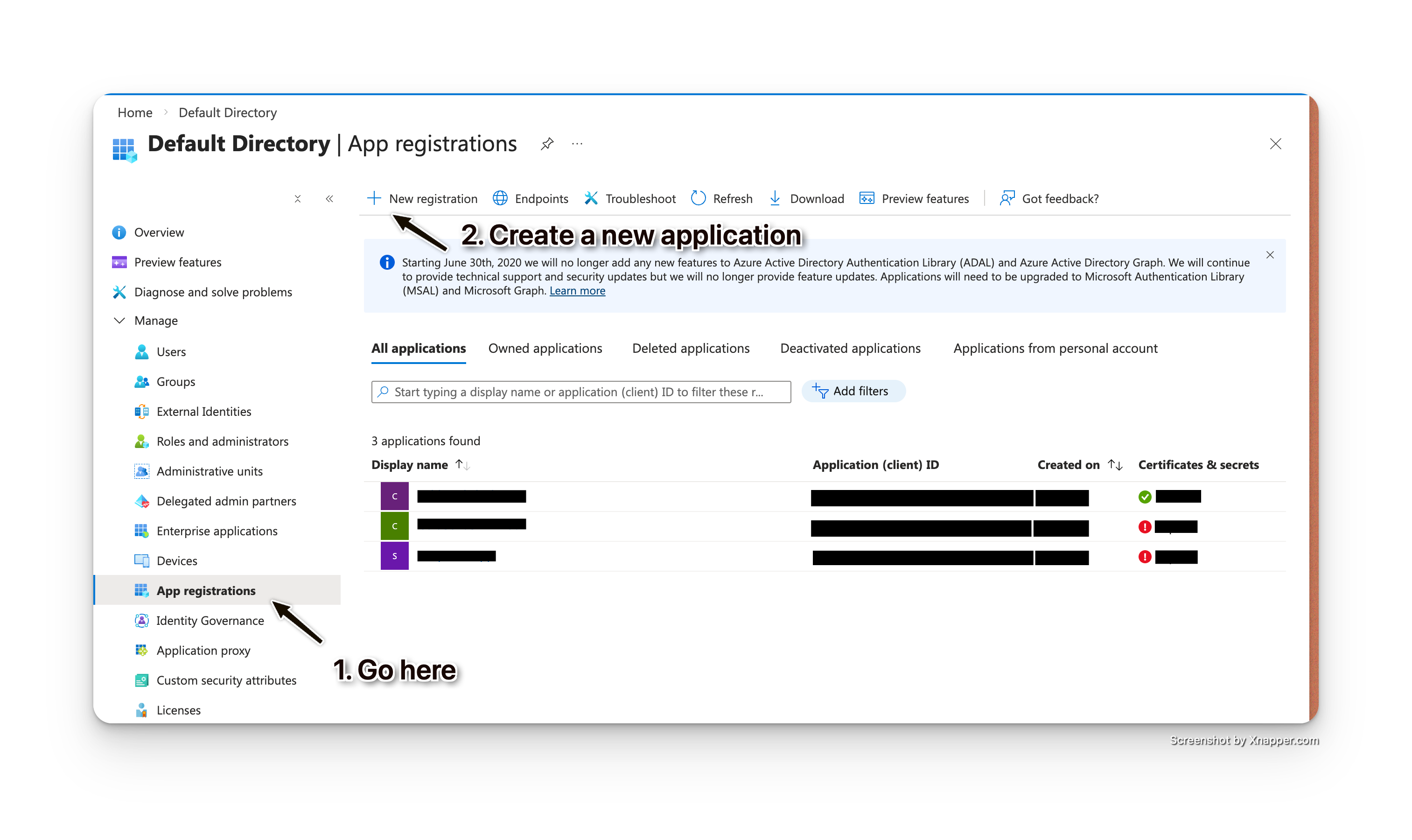 - Click App registrations in the left sidebar
