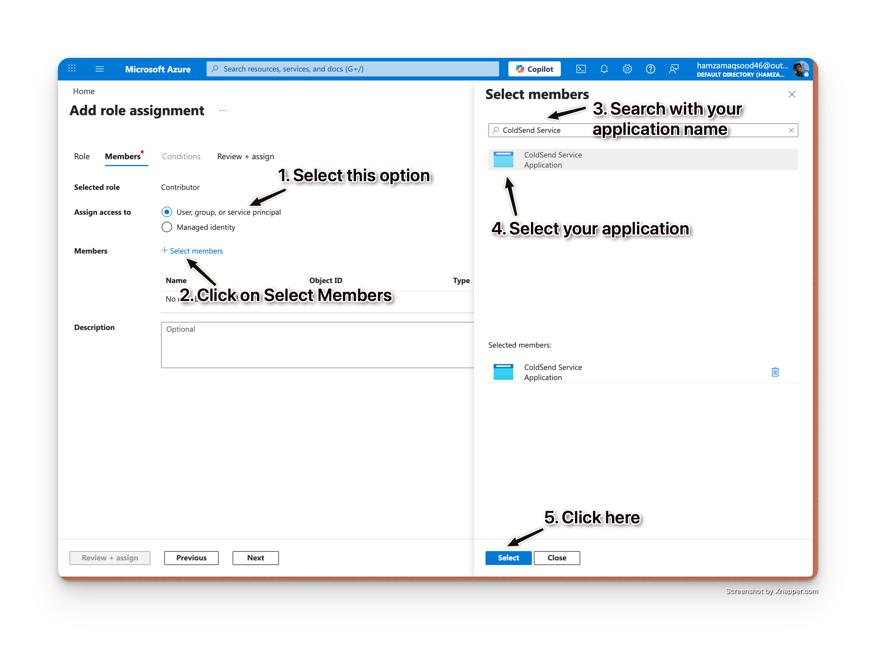 Search for your app registration name (e.g., "ColdSend Service")