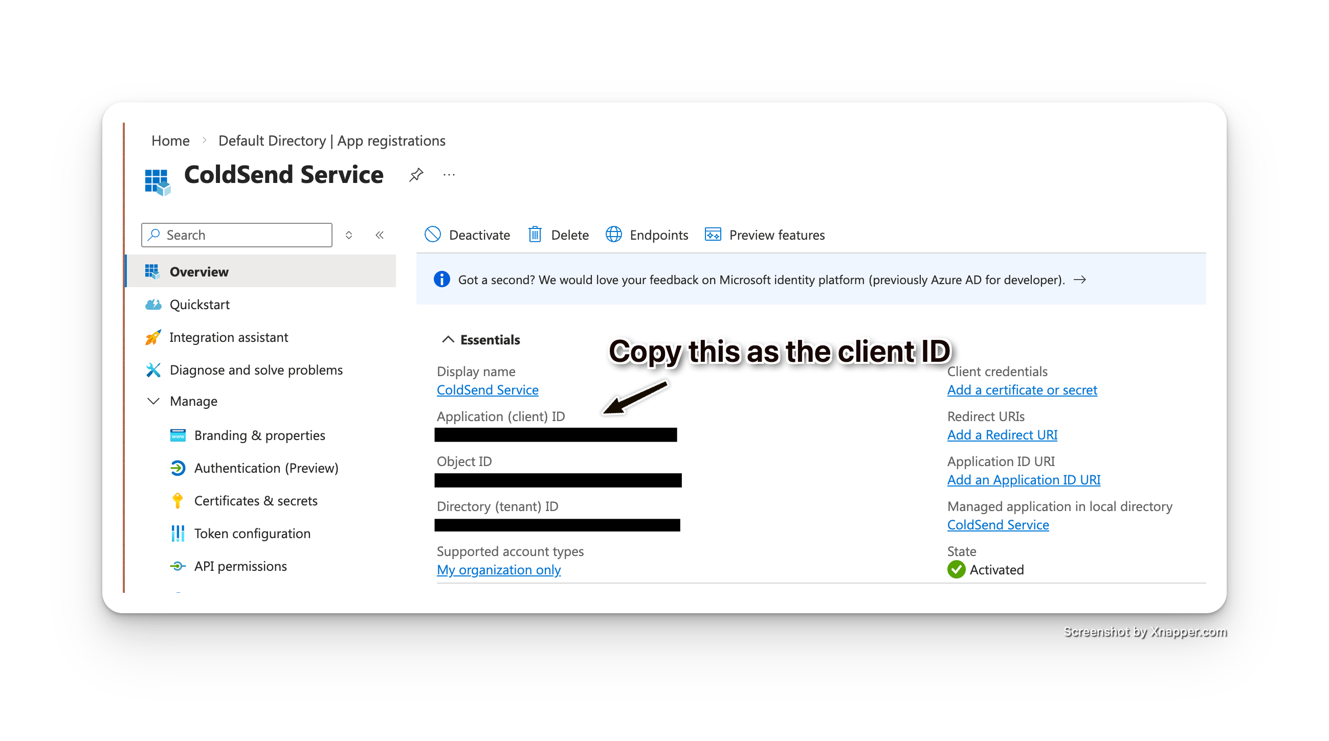 - Copy the Application (client) ID — this is your Client ID