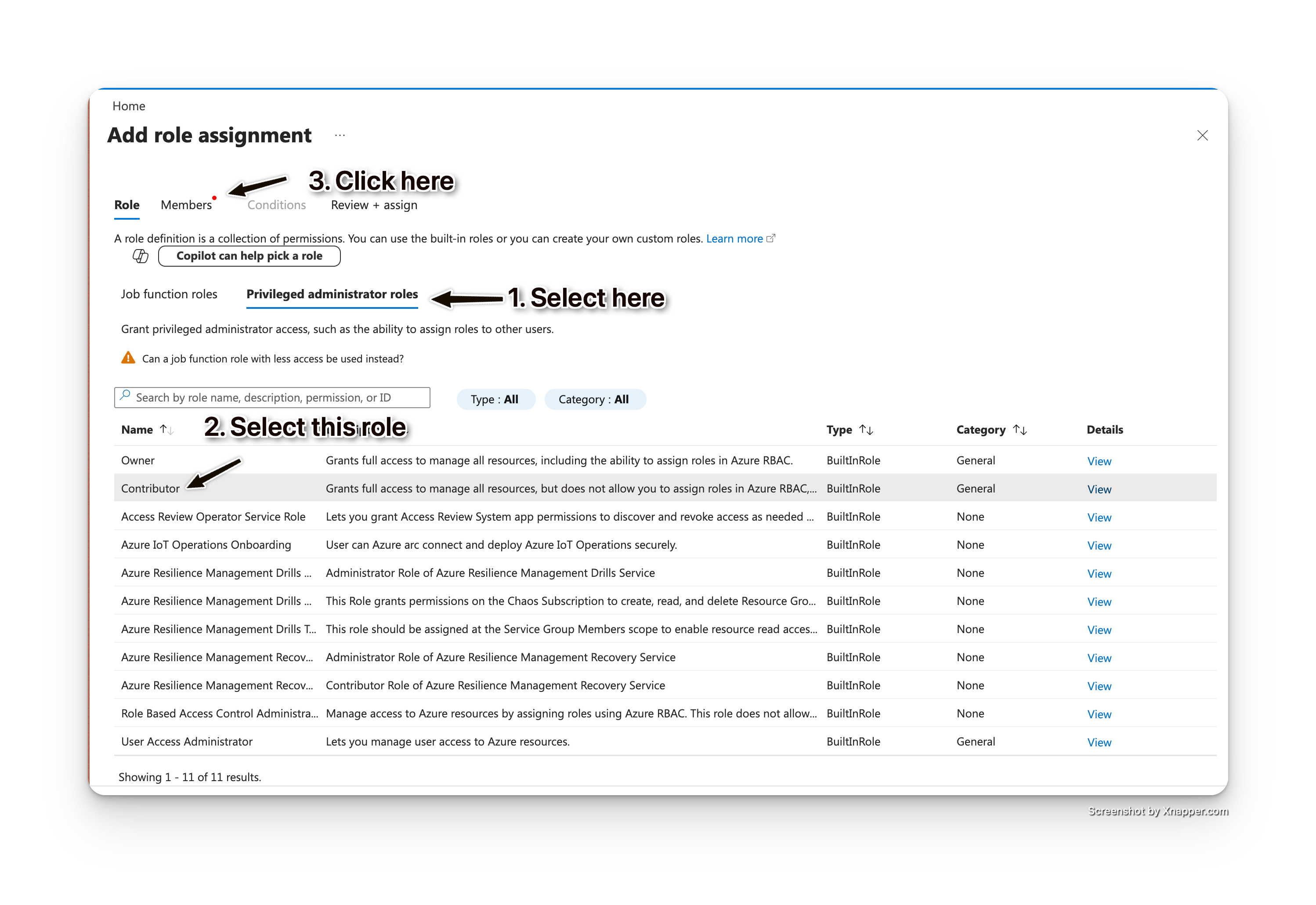 Select the Contributor role