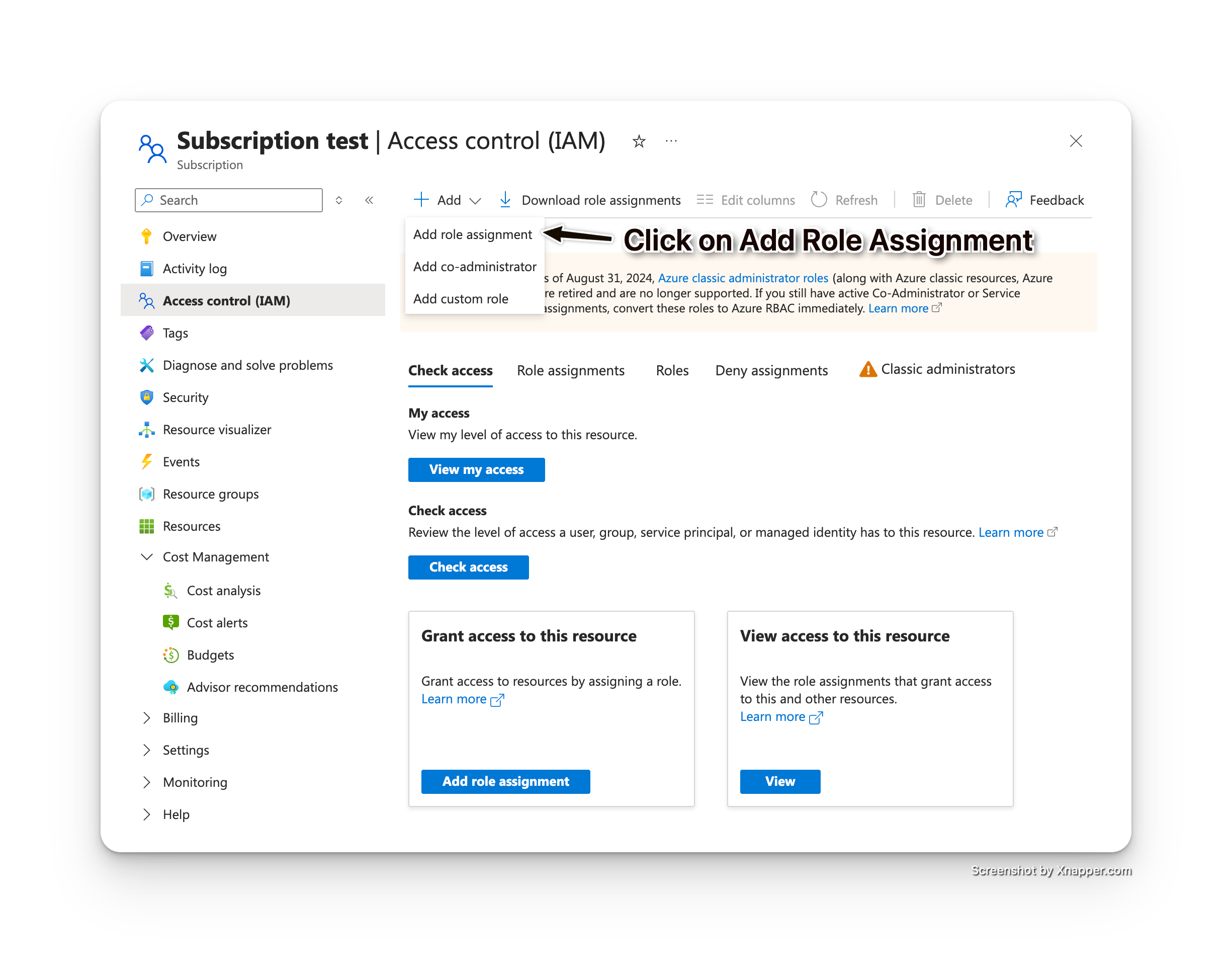 Click + Add → Add role assignment
