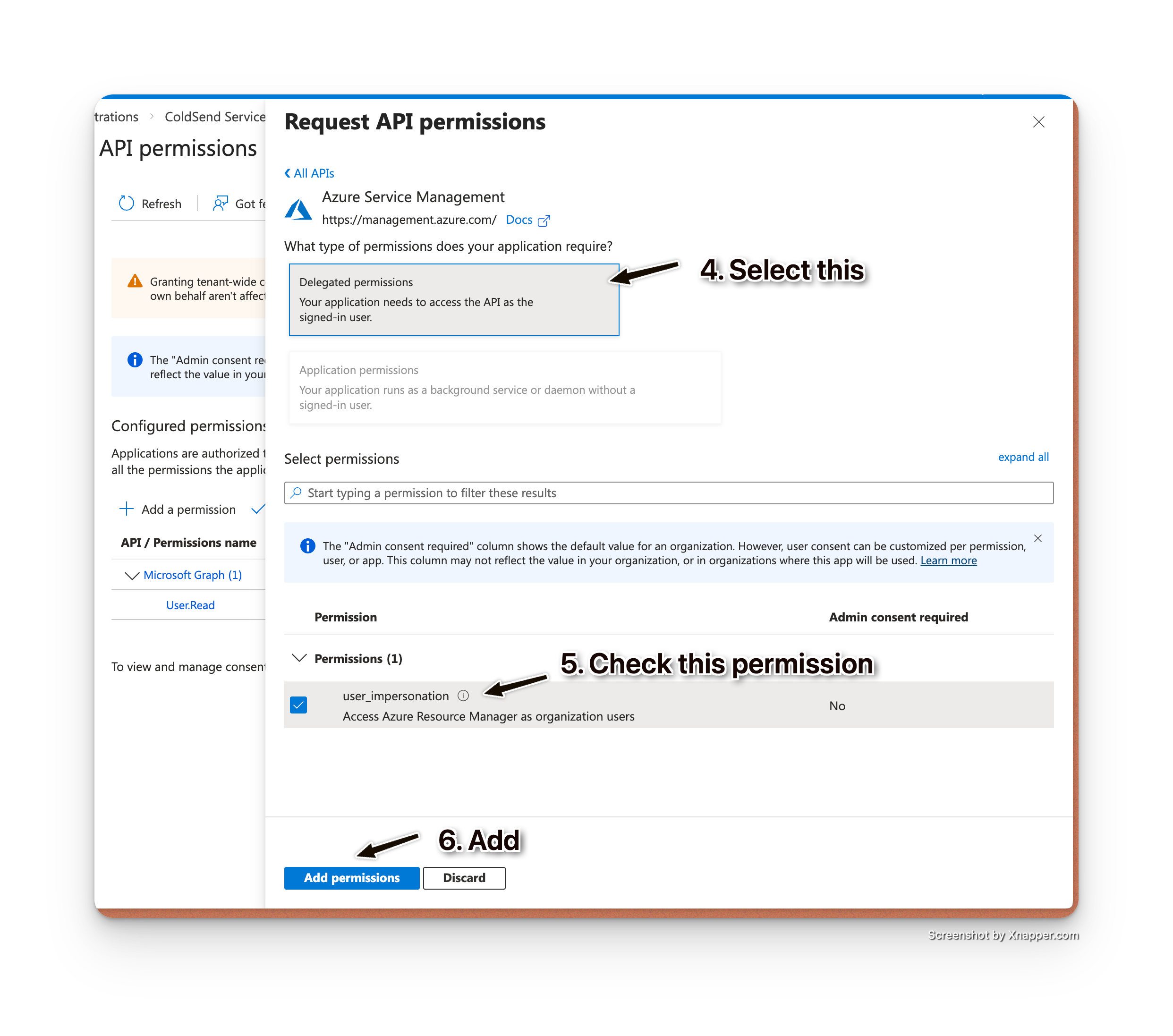 Select Delegated permissions