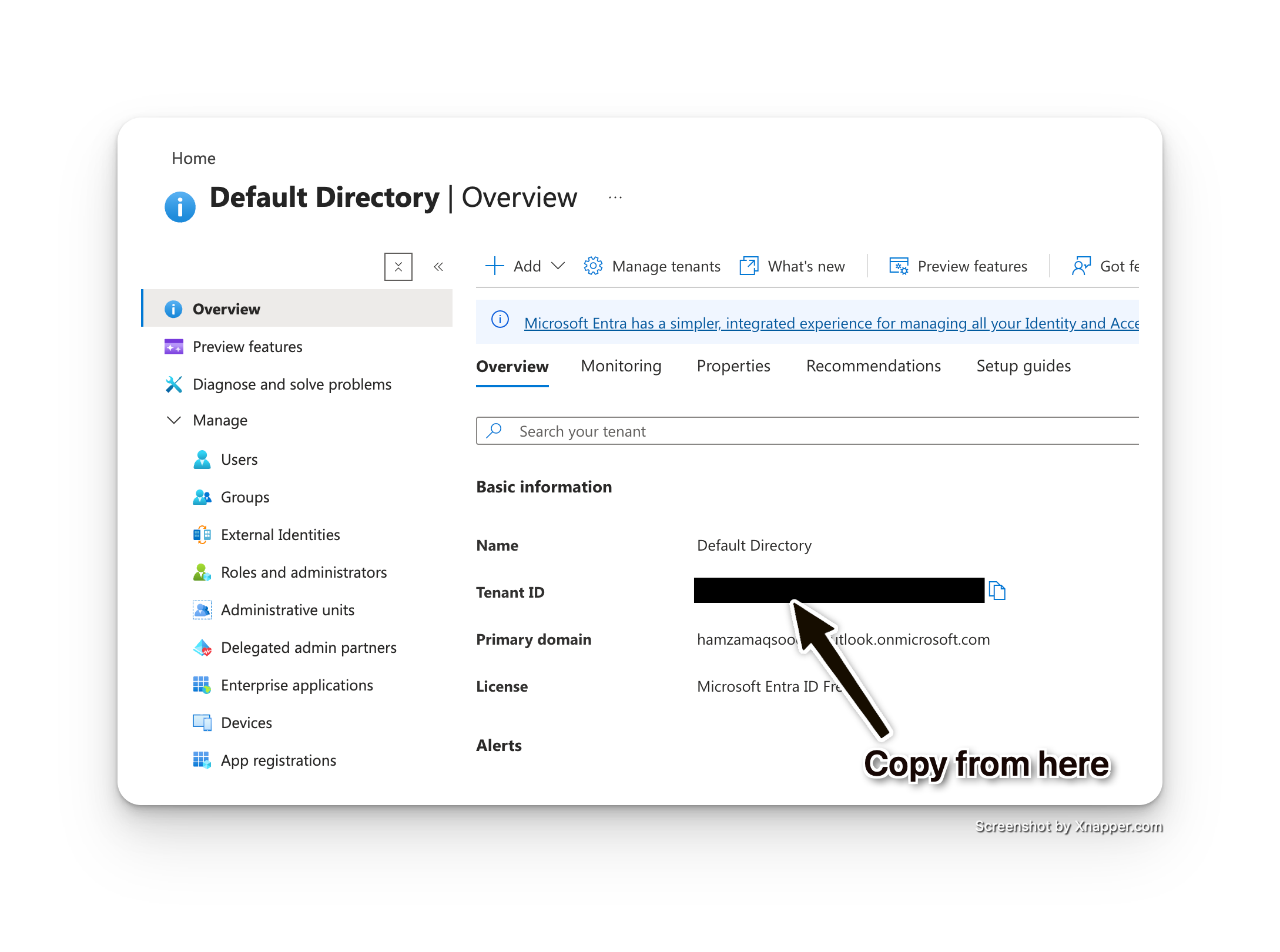 Copy the Tenant ID (a GUID like
